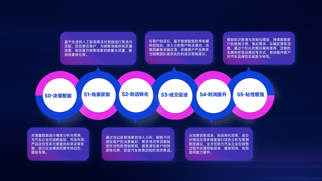通过拓宽潜在客户来源、、优化线索分配并提高到店转化率,,,,以增强销售效率。。。同时,,,利用线索数据不断优化分析模型,,有效提升转化率,,,扩大营销影响力。。。